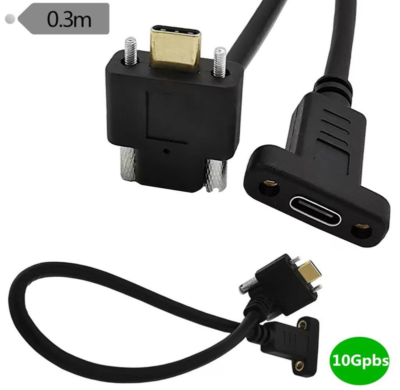 0.3M Male to Female USB3.1 Type-C transmission cable with screw hole